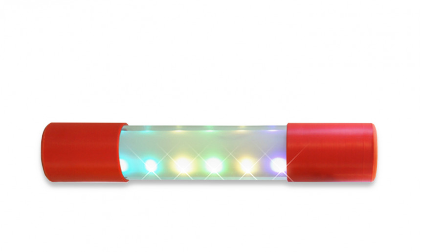 - Для того чтобы включить трубу, нужно на торцевой части (цветная заглушка) нажать на центральную часть, до характерного включения кнопки.