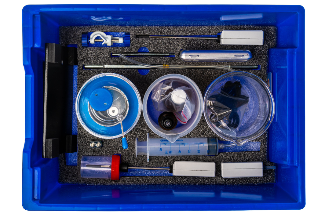 Комплект (за исключением штатива) укомплектован в пластиковую систему хранения, которая закрывается прозрачной пластиковой крышкой на защелках для обеспечения наблюдения за содержимым. Комплект оборудования в системе хранения располагается на ложементе в индивидуальных ячейках. Штатив имеет отдельную упаковку.