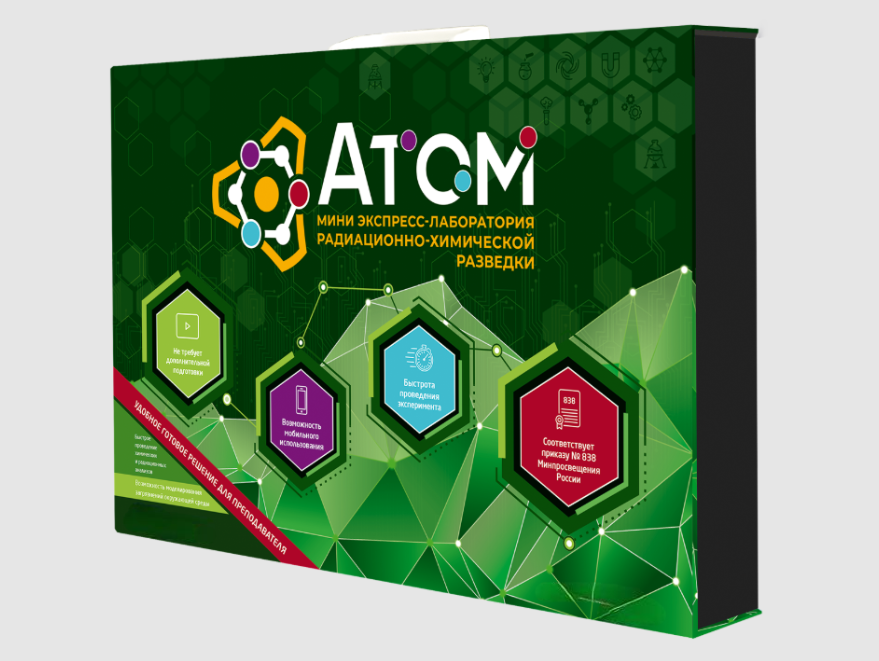 Мини-экспресс-лаборатория радиационно-химической разведки "Атом" - это компактный и многофункциональный учебный набор, предназначенный для исследовательских работ и практических занятий по обнаружению и оценке факторов радиационной и химической опасности, оценке состояния объектов окружающей среды и здоровья человека в рамках учебного предмета "Основы безопасности и защиты Родины" (ОБЗР).