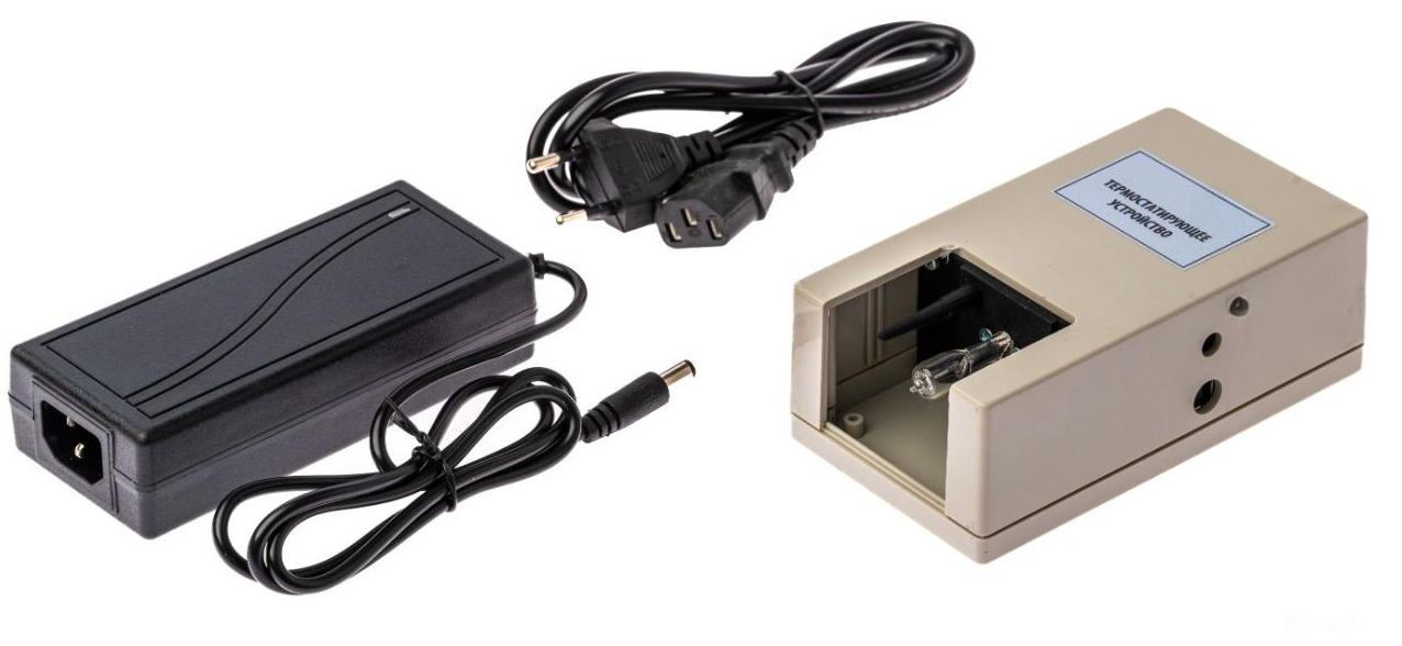 Термостатирующее устройство собрано в корпусе из пластика и рассчитано на использование совместно с кюветой, поставляемой в комплекте цифровой лаборатории.