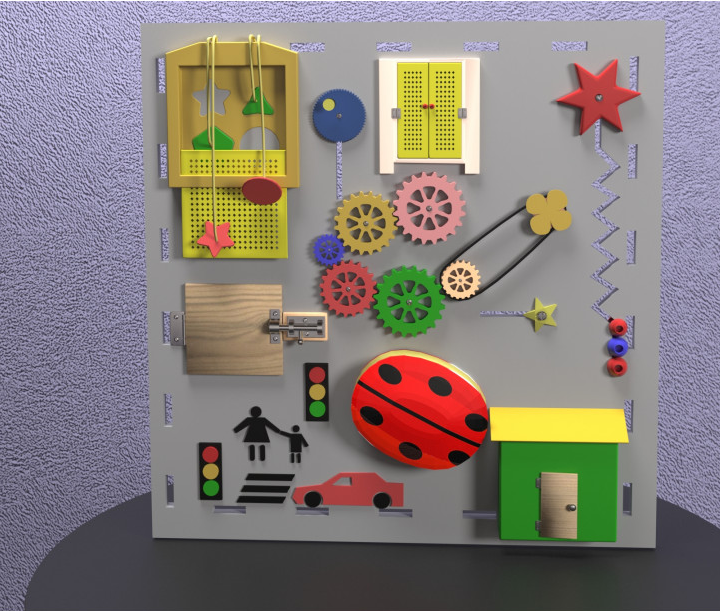 Бизиборд на тему яркой мечты разнообразит времяпровождение ребенка в любом месте, радуя его изо дня в день. С данной игрой, ребенок может постоянно менять правила игры, развивая в себе самые лучшие качества.