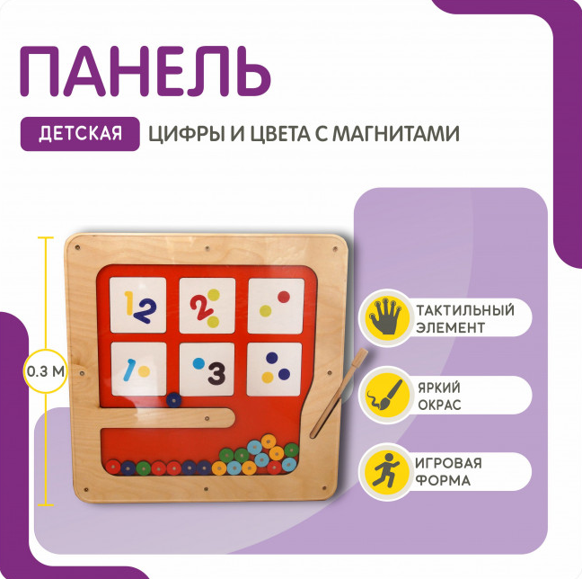 Не упустите возможность приобрести качественную и полезную игру для своего ребенка - детскую панель от Инклюзив РУС. С ее помощью вы поможете ребенку от 3-х лет развить математические навыки, а также научиться различать цвета. А еще представленная игра поможет ребенку развить мелкую моторику и координацию движений, а также логику, внимательность и усидчивость. Игра выполнена из натурального дерева и безопасных материалов, что делает ее безопасной для детей, а игровые элементы - разноцветные кружочки из дерева с металлическим центром. В комплекте есть магнитная ручка, которая помогает перемещать элементы по игровому полю. Подойдет для детских садов и школ, для домашнего использования, для развивающих центров и игровых комнат.