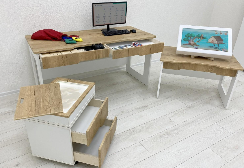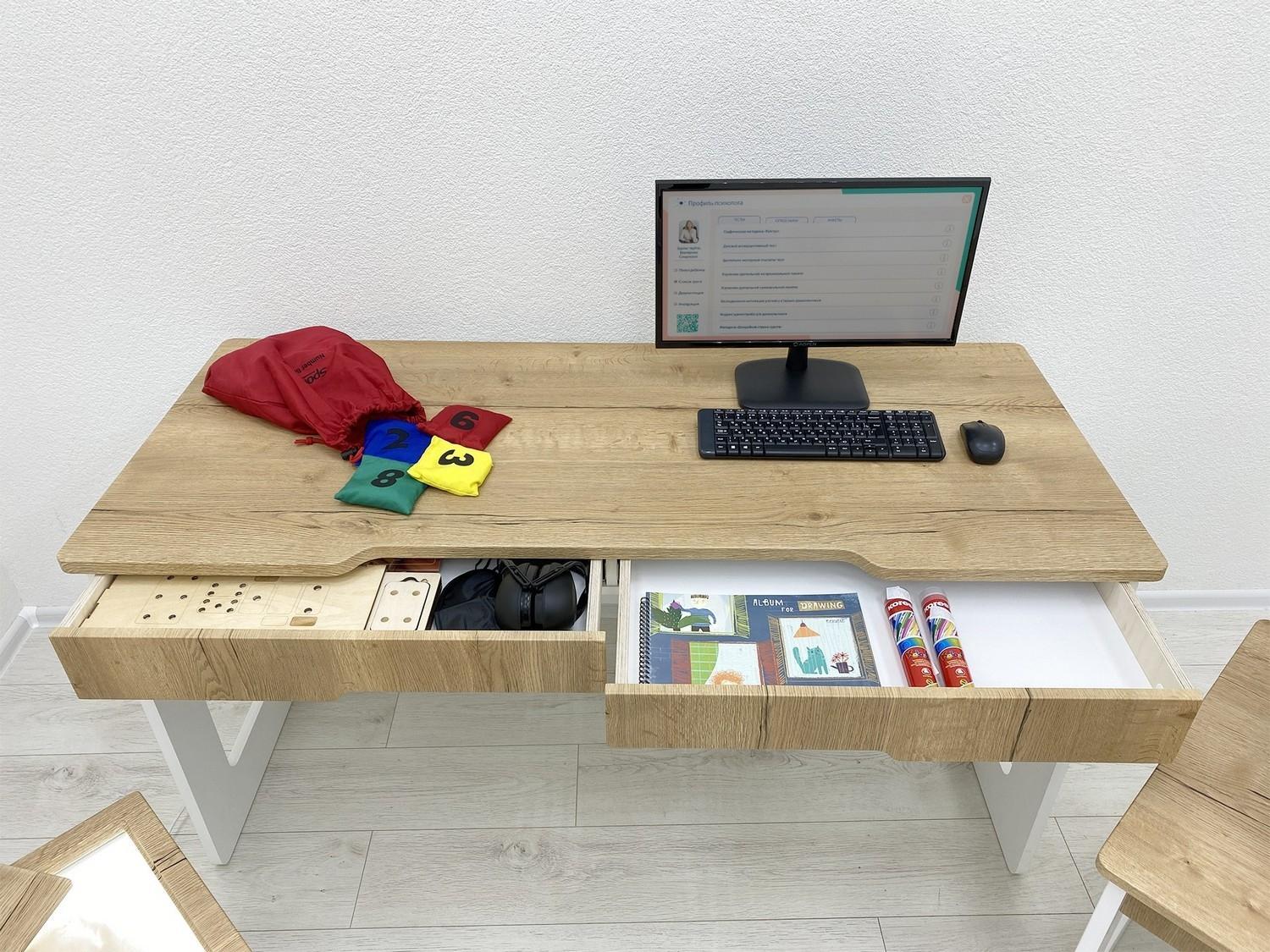 Стол ПРО – это профессиональный стол с отдельным рабочим местом для специалиста психолога-дефектолога.