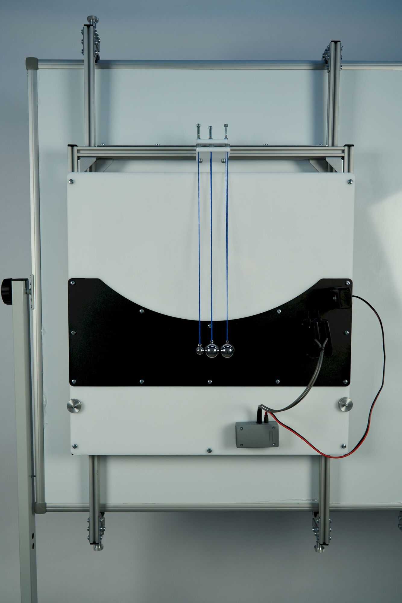 Лабораторная установка обеспечивает центральный удар двух стальных шаров одинаковой или различной массы, один из которых перед столкновением покоится. Шары подвешиваются на регулируемых по высоте бифилярных подвесах, которые крепятся к кронштейну в верхней части стенда. Для обеспечения стабильных начальных условий имеется пусковое устройство, управляемое с компьютера.