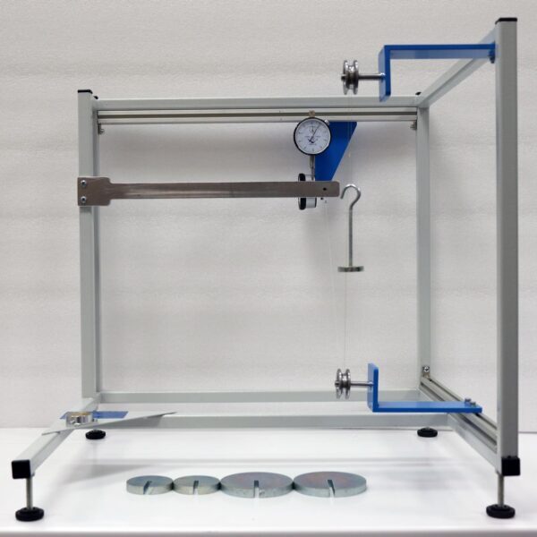 Для задания угла нагружения балки используется система с двумя роликами: подвижным и неподвижным. Нагружение осуществляется с помощью наборных грузов.