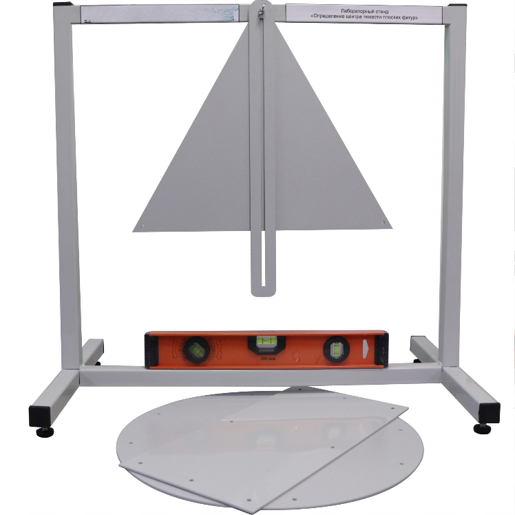 Учебный лабораторный стенд «Определение центра тяжести плоских фигур» предназначен для экспериментального определения координат центра тяжести различных плоских фигур. Стенд может быть использован при проведении лабораторных работ по курсу «Техническая механика» и другим аналогичным курсам в высших и средне специальных учебных заведениях.