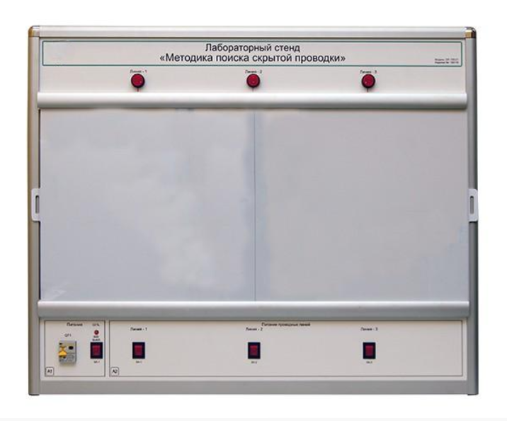 Лабораторный стенд «Методы поиска скрытой проводки» выполнен в настольном исполнении: моноблок устанавливается на лабораторном столе заказчика.