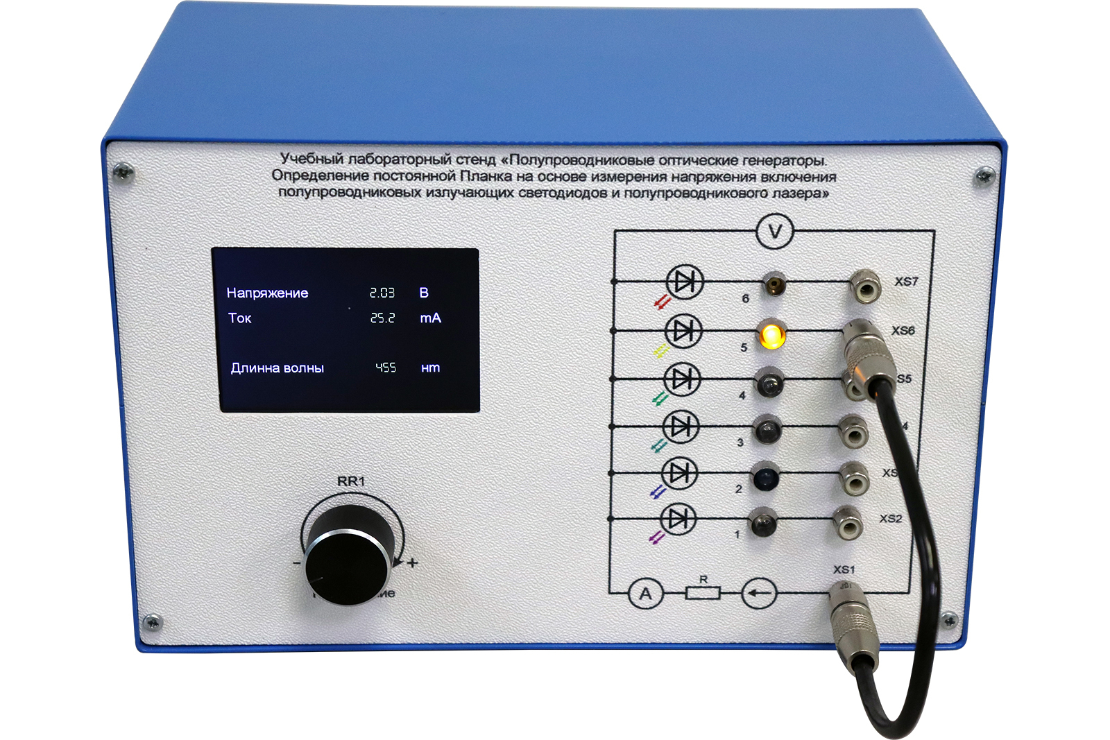 Учебный лабораторный стенд «Полупроводниковые оптические генераторы. Определение постоянной Планка на основе измерения напряжения включения полупроводниковых излучающих светодиодов и полупроводникового лазера»
