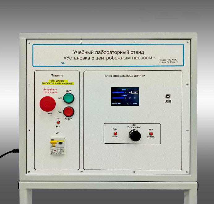 Стенд «Исследование параметров работы насосов» предназначен для проведения лабораторных работ в средних и высших учебных заведениях для студентов, обучающихся по направлению «Строительство». Выполнен согласно ТУ 32.99.53–001–09519063 – 2019 и имеет соответствующий сертификат производителя ГОСТ Р на данный вид продукции и сертификат качества ИСО 9001-2015.