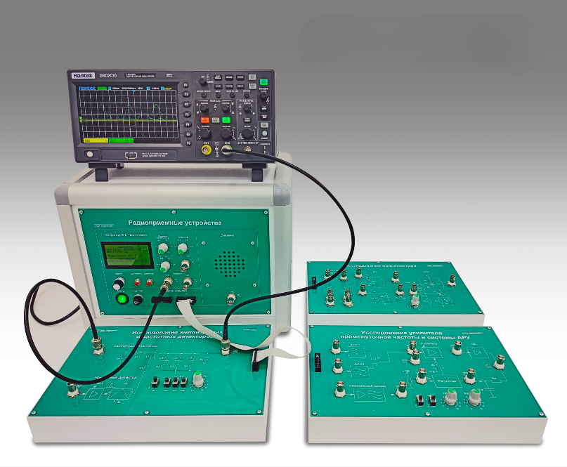 Универсальный лабораторный комплекс «Радиоприемные устройства» выполнен в настольном исполнении: в состав комплекта входят основной блок и набор модулей для проведения лабораторных работ.
